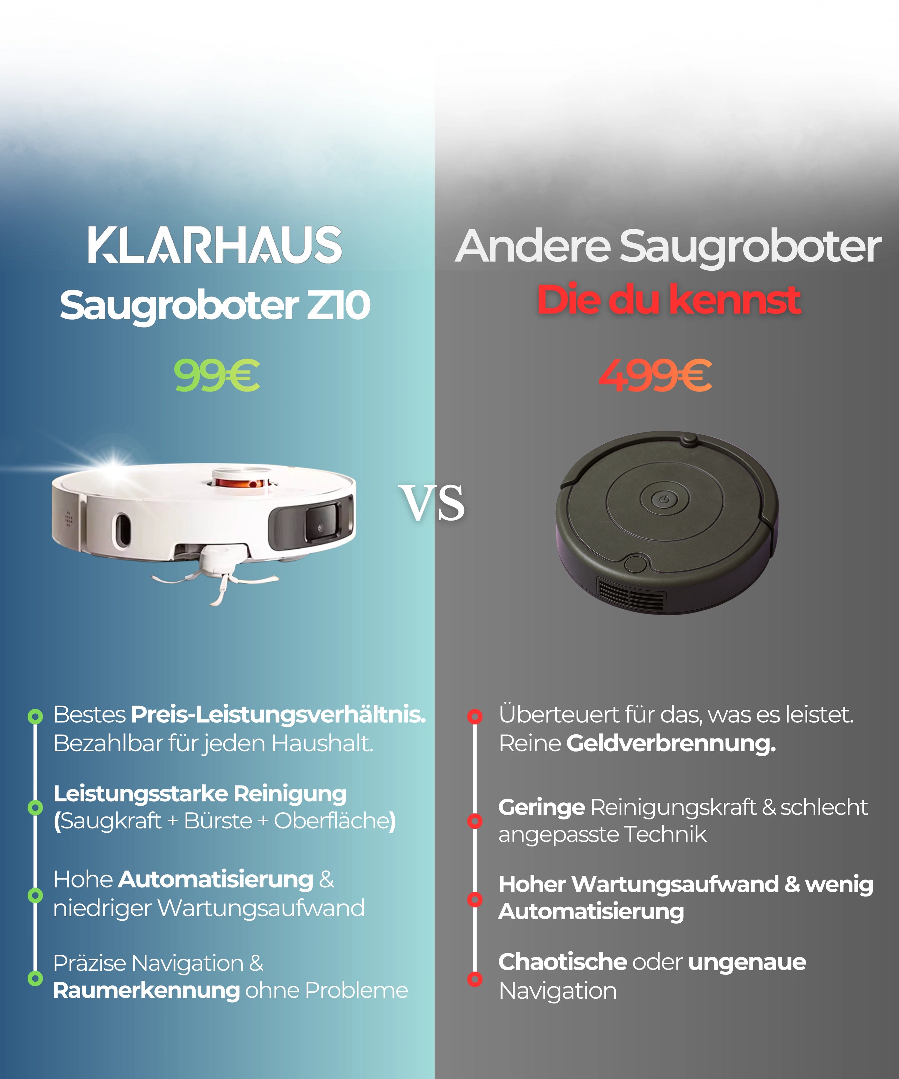 Er passt die Saugleistung intelligent an – kein unnötiges Reinigen, kein Übersehen von Ecken.